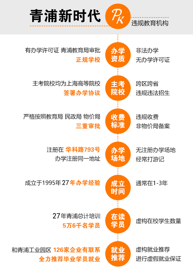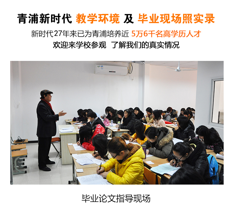 青浦新时代是青浦区领先的综合性成人学校,办学许可证号:教民131011870 000120 号。我校于1995年成立,建校27年,与上海理工大学、上海第二工业 大学、上海政法学院和上海海事大学等多所上海一本高校合作,为青浦地区学 员的学历提升,职业发展以及青浦本地的经济发展做出了巨大的促进作用。